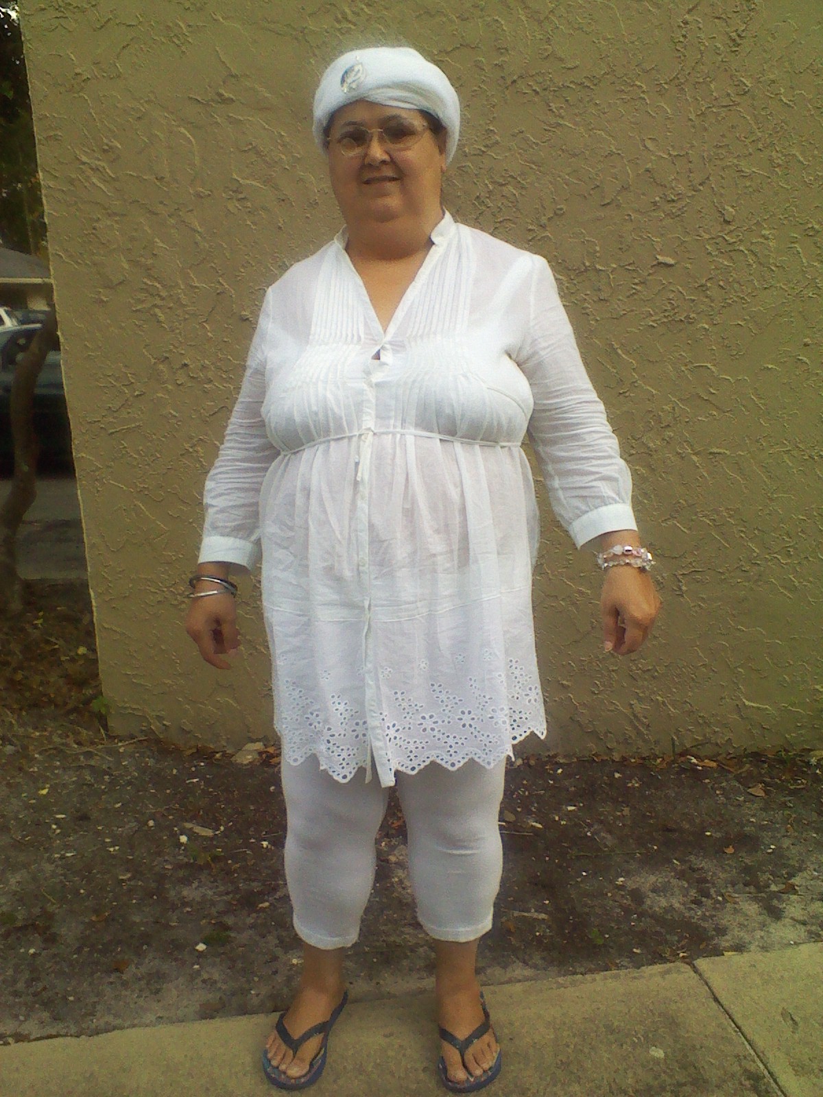 are unfamiliar with Sikhism it's the clothes that Sikhs wear. I wanted 2 see what I'd look like & find out what it feels like. (Since I'm visually challenged). Well 4 the most part it was great. However, next time I'll wear a short sleve white tunic instead of the long sleve 1 I wore the last time. Way too hot!! I wore my bana 2 church that Sabbath. Both 2 gauge their reaction (which I didn't get any). & 2 let my church family know that I'm making some changes & don't freak out if I no longer go 2 church after the 1stSabbath in November- or even sooner if I'm able 2 either arrange transportation 2-or even an affordable place 2 livre close 2 the gutrdwara. (The Sikh Society of Central Florida). So please pray that 1 of those things happen! Well tha's it 4 now. Until next time Sat Nam, Dana Morgan a.k.a Amrita Kaur